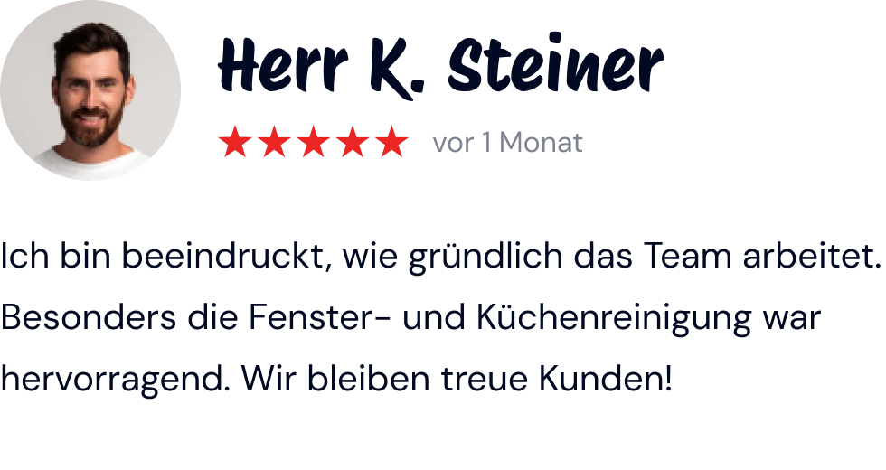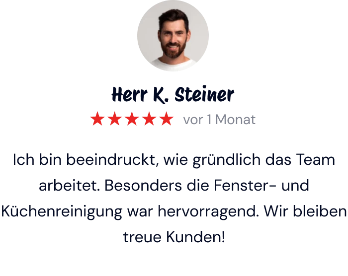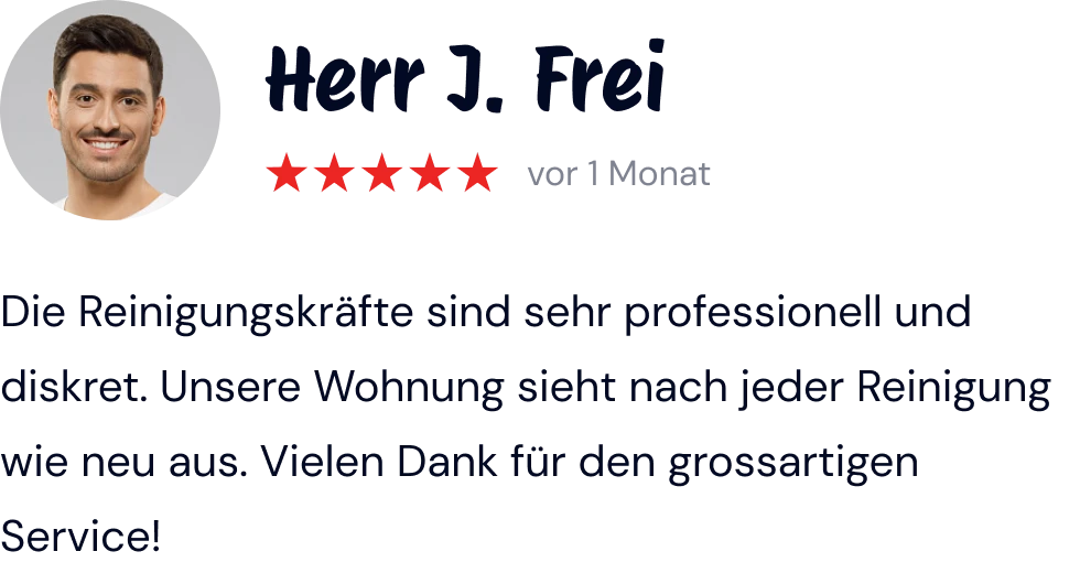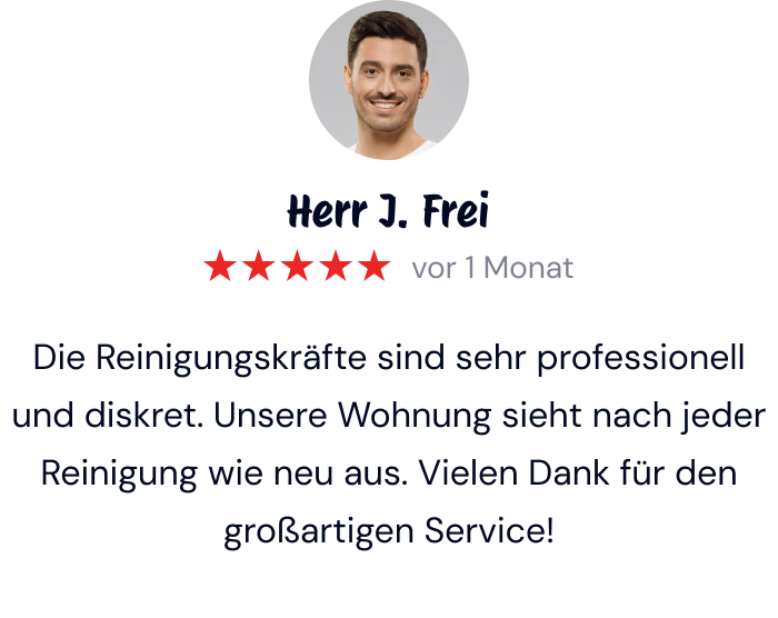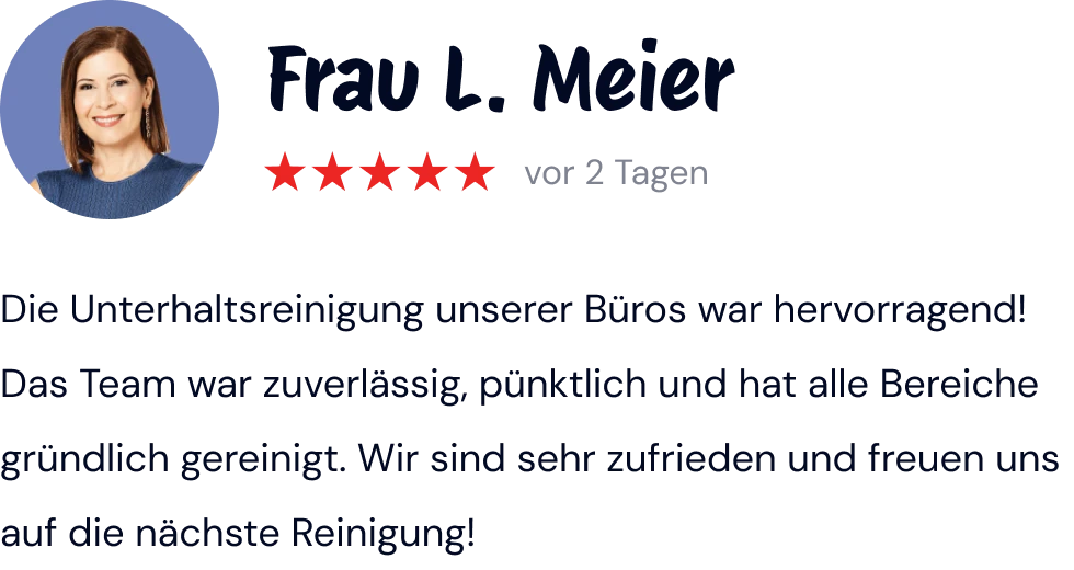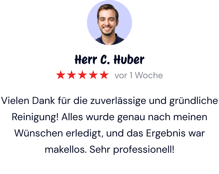 Ihre Zufriedenheit steht bei uns an erster Stelle. Falls Sie mit einer Reinigung nicht zufrieden sind, bessern wir kostenlos nach, um sicherzustellen, dass alle Anforderungen erfüllt werden.