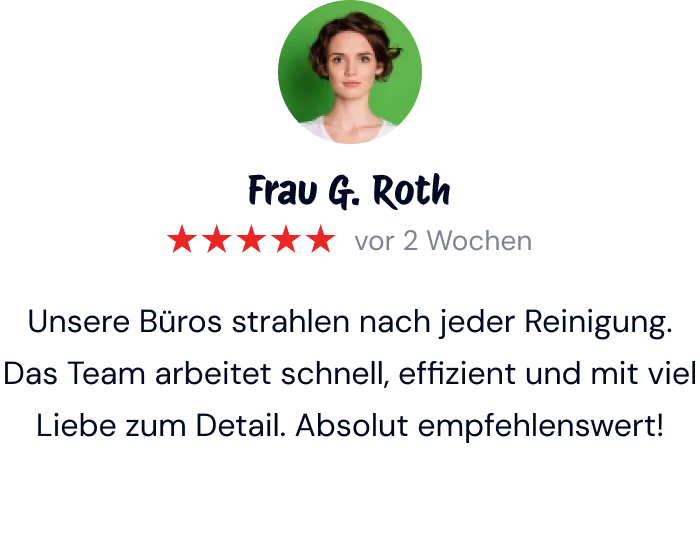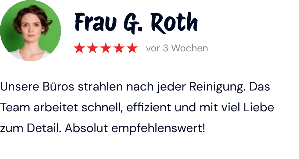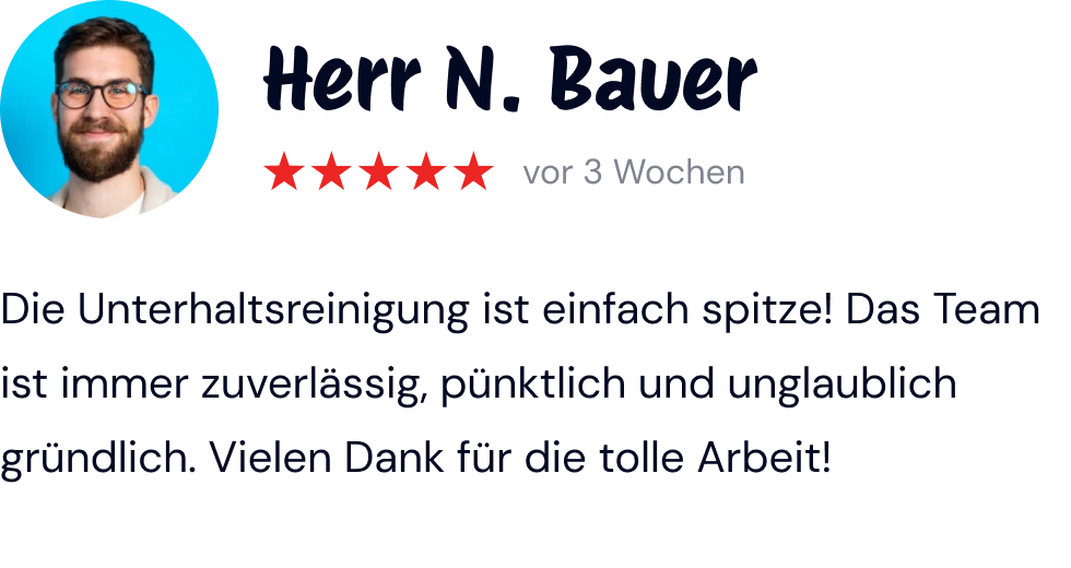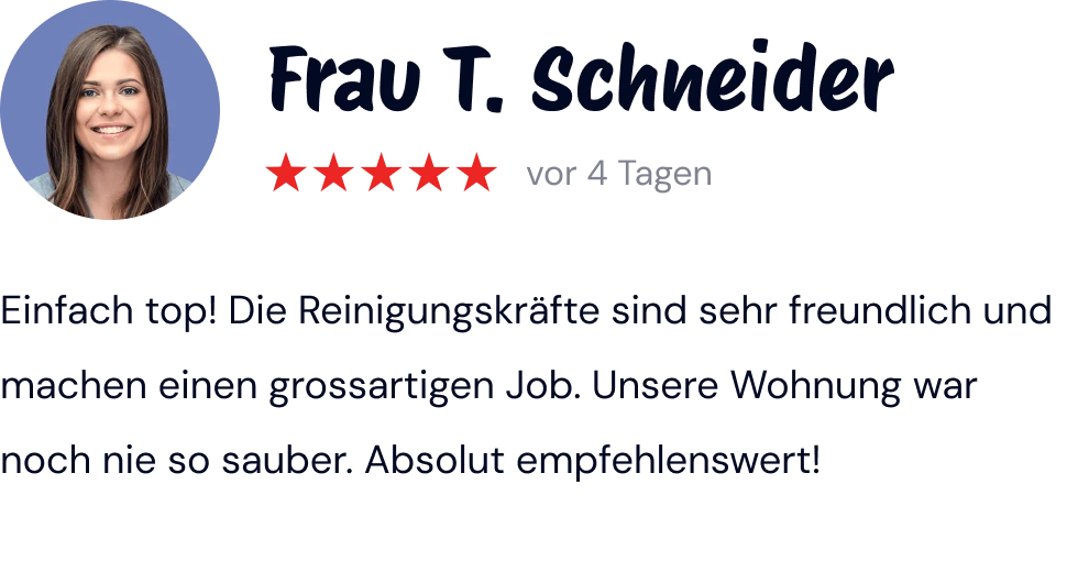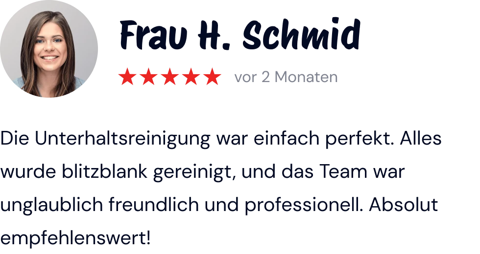 Die Häufigkeit hängt von Ihren individuellen Bedürfnissen ab. Für Büros und stark frequentierte Gewerbeflächen empfehlen wir tägliche oder wöchentliche Reinigungen. In Privathaushalten reichen oft ein bis zwei Termine pro Woche aus.
